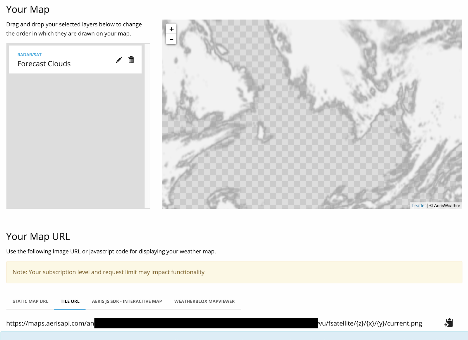 First of all, let’s create our cloud map. AerisWeather website has an amazing `Map Url Builder` tool to help you generate urls fast and very easily.